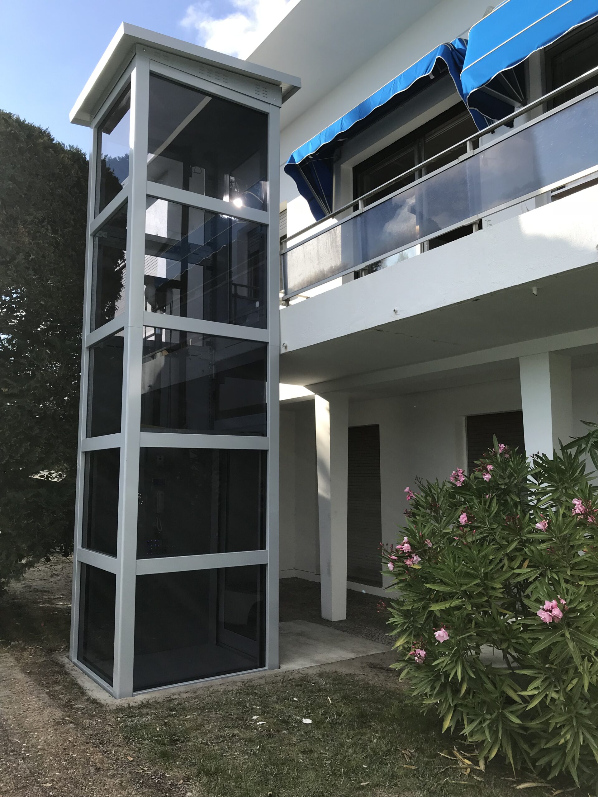 L’ensemble de l’ascenseur de maison extérieur est entièrement vitré assurant ainsi clarté et design moderne à votre élévateur et un design moderne, pour une intégration parfaite avec votre logement, sans perdre le charme extérieur.